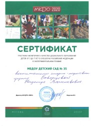 Сертификат участника мониторинга качества дошкольного образования детей от 3 до 7 лет в субъектах Российской Федерации в экспериментальном режиме