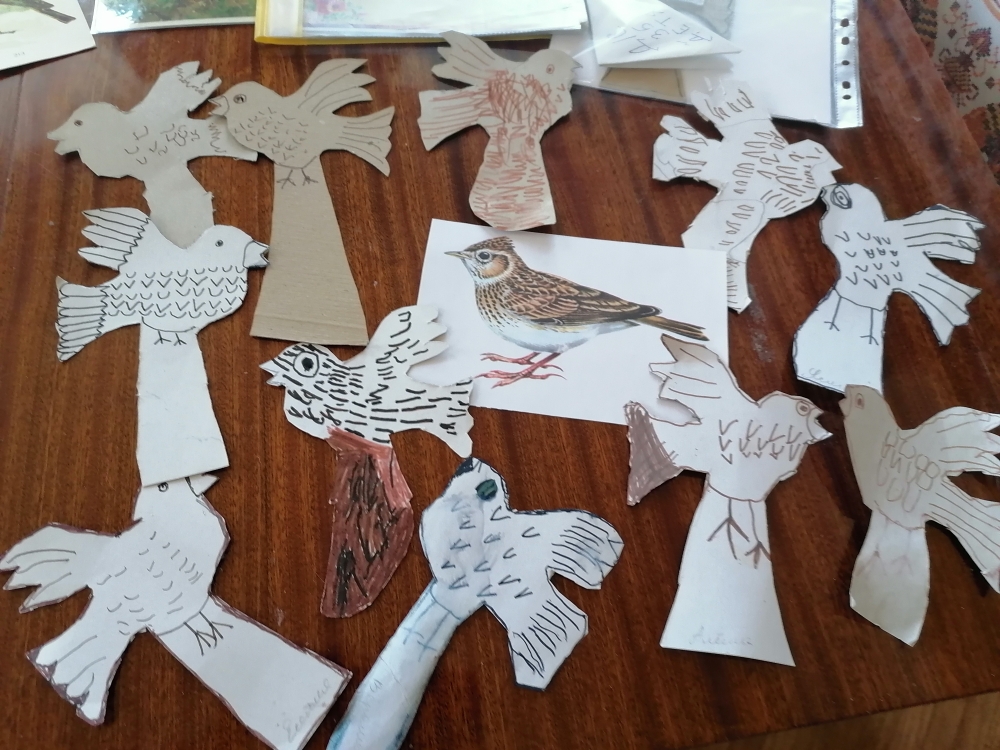 А еще мы выходим на улицу с птичками и кричим заклички Весне и жаворонкам.