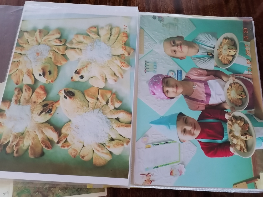 В группе изготовлена рукотворная книга "Поэтапное выпекание жаворонков" в фотографиях с подписями.Дети с удовольствием рассматриавают и вспоминают свой труд.